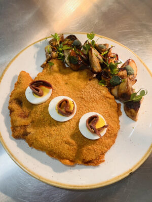 pui/porc/vita, pesmet, ou, panko, fulgi porumb, faina
